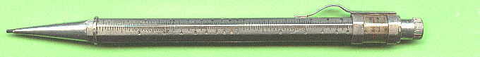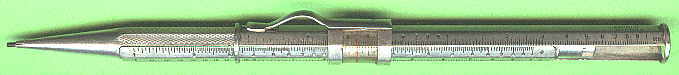 | Dieses seltene Exemplar eines Drehbleistift verwandelt sich, wie im 2. Bild zu sehen, in einen vollwertigen Rechenschieber! | ||
